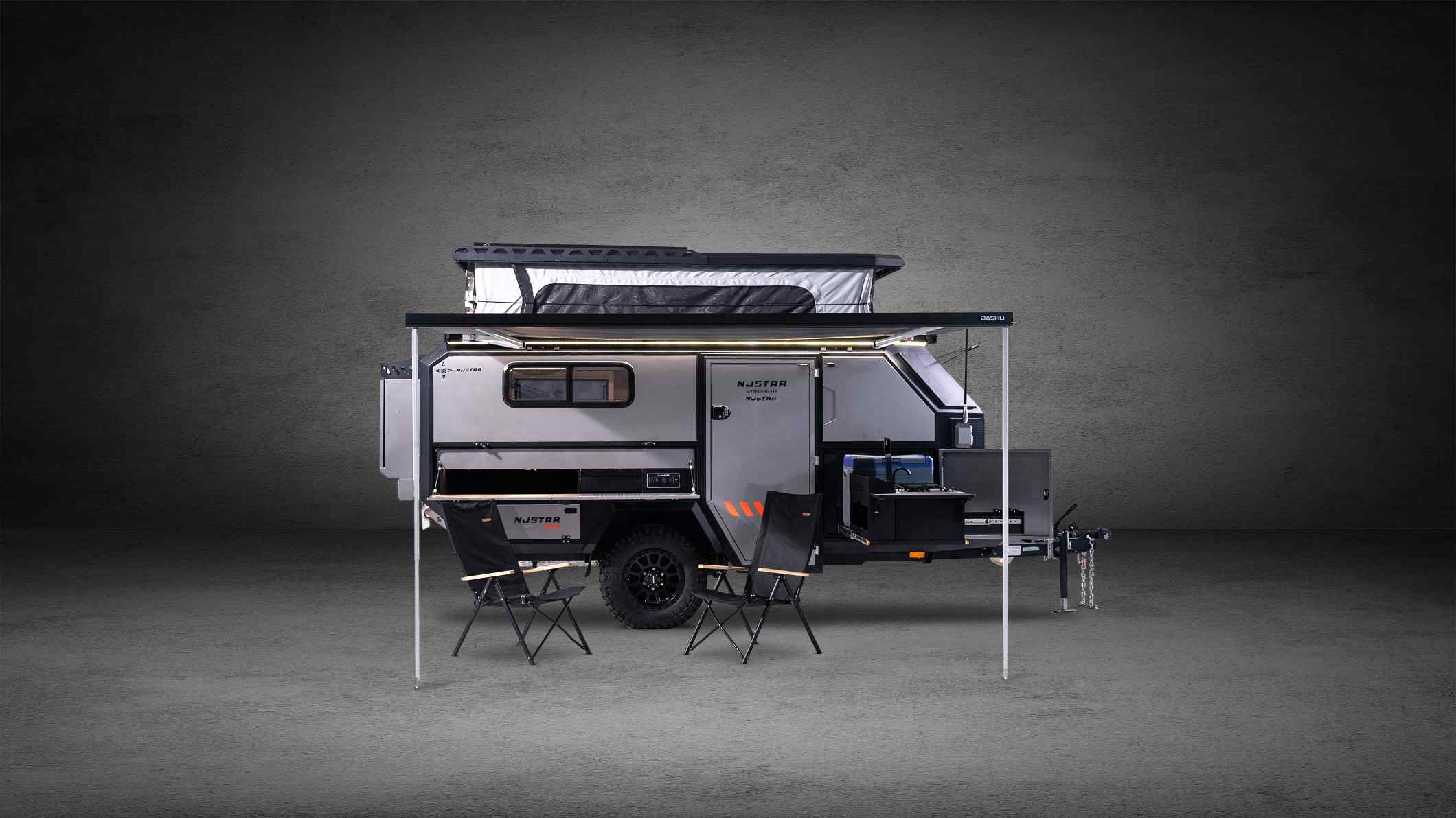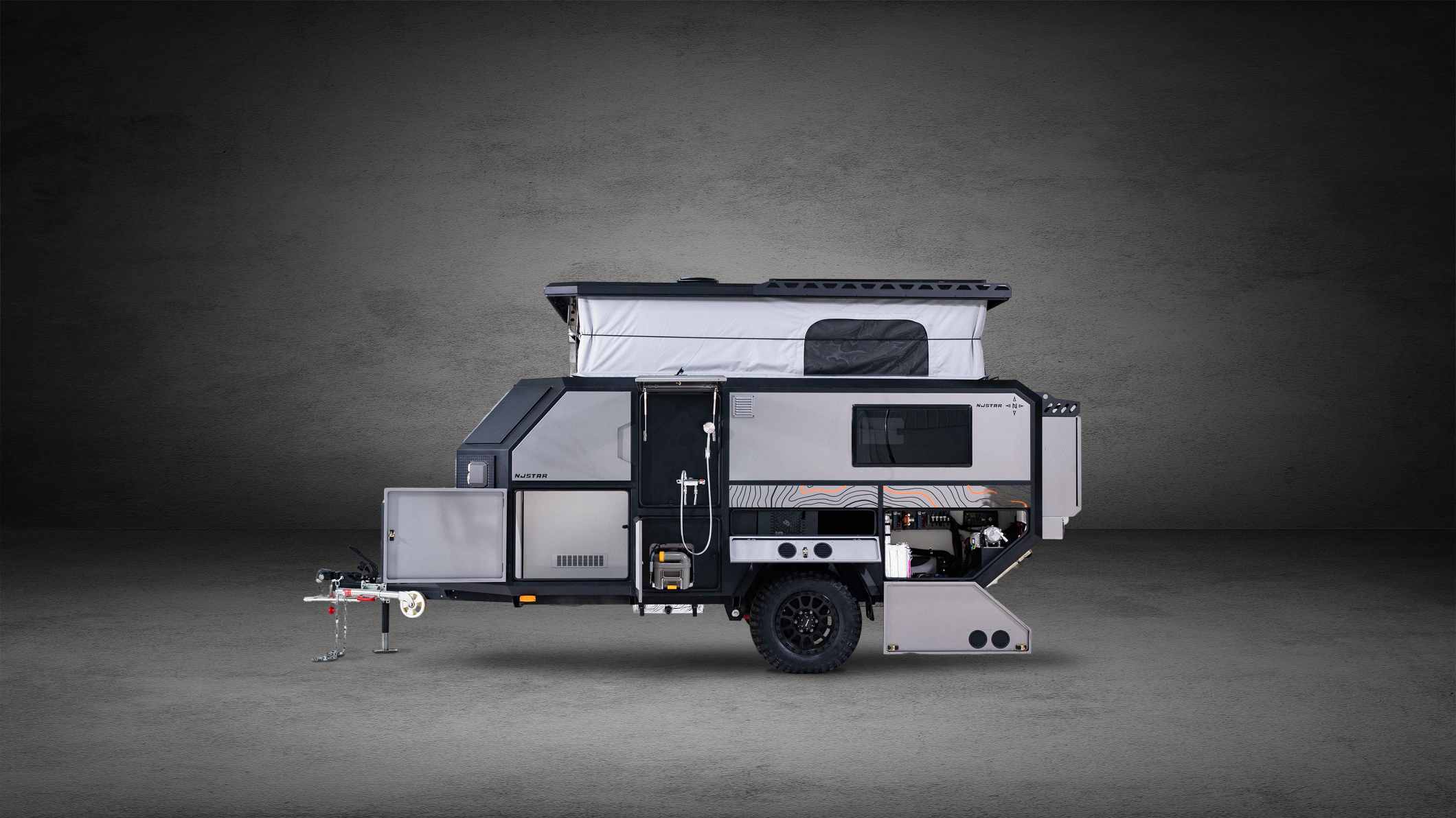 De geheel nieuwe NJSTAR Commander is gebouwd voor gezinnen en avonturiers die hunkeren naar echte offroad-vrijheid. Het 5,5 meter lange pop-upontwerp combineert sterke off-grid-mogelijkheden met robuuste, op de gebruiker gerichte techniek, waardoor veeleisende reizen comfortabel en moeiteloos worden.